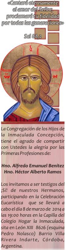 Durante ésta semana, (17 al 21 de Febrero), queremos compartirles que el Hno. Raúl (Maestro de Novicios) junto a los Hermanos Novicios Héctor y Emanuel (miembros del equipo web) estarán de retiro en preparación a su profesión religiosa que tendrá lugar el día 08 de marzo. Pero también la alegría de la Inmaculada y Padre Monti es grande...porque el noviciado CFIC continua, una nueva etapa, ya que también Matías y Pablo realizarán un encuentro de preparación al ingreso al noviciado que tendrá lugar el mismo día.